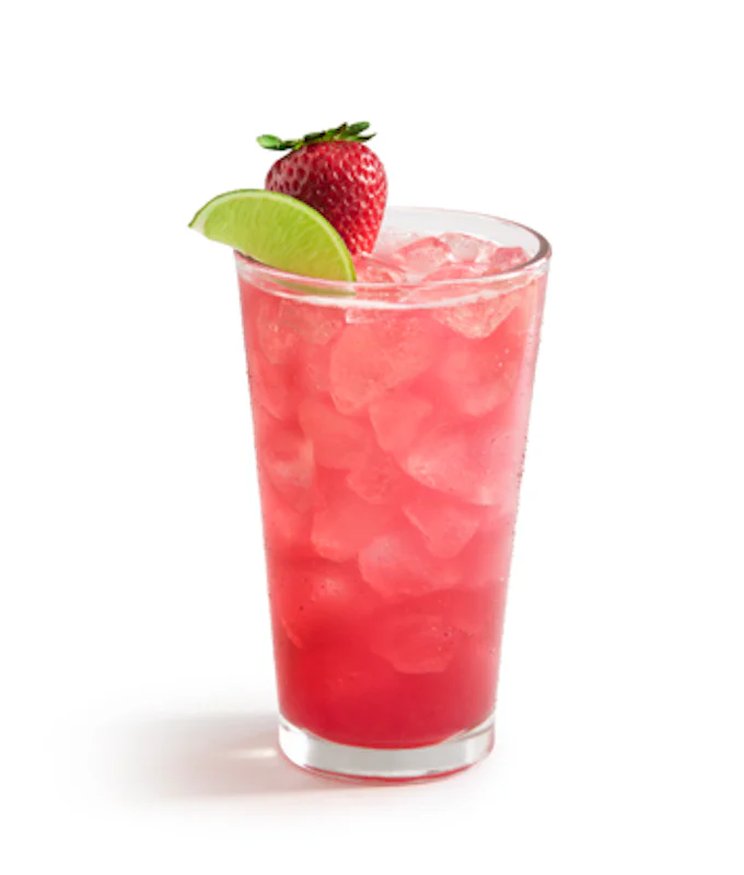 Fresh strawberries shaken with peach and blood orange, topped with sparkling soda.